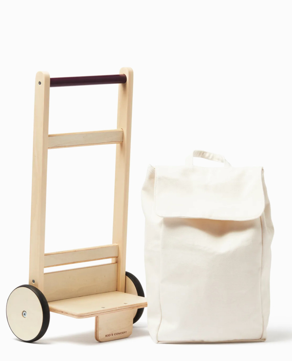 Mész vásárolni, és belefáradtál abba, hogy zacskóban hordd a tejet? Akkor jó helyen jársz! Ezzel a gyermekeknek szánt bevásárlókosárral könnyen beszerezhet mindent az üzletből. A környezetnek is jobb, mint a műanyag zacskó használata. Egyébként tudtad, hogy ezt a fajta babakocsit a „dramaten” becenév a svéd „dramaten” szó miatt kapta, ami „ételt húz”? Ha nem, most megteszed. Erős vászontáskája van, ahová játékételeket helyezhet el, és könnyen zárható tépőzárral az elején. A táska hátul tépőzárral van rögzítve, így játék közben levehető és felvehető. A kerekek gumigyűrűvel vannak ellátva, hogy minimálisra csökkentsék a zajt és csökkentsék annak kockázatát, hogy nyomokat hagyjanak a padlón.