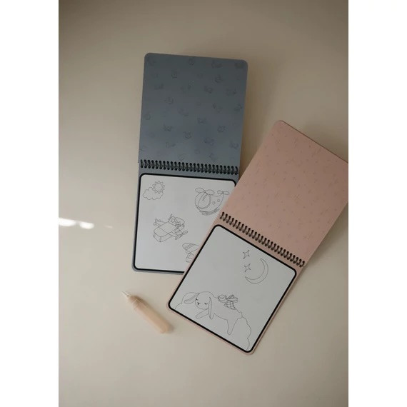 A Mushie újrahasználható vízzel festő könyv egyszerű és rendezett módon támogatja a gyerekek kreatív játékát egy négyoldalas füzettel, ami finoman illusztrált, mesés jeleneteket tartalmaz, amelyek kizárólag víz hatására színesednek ki.