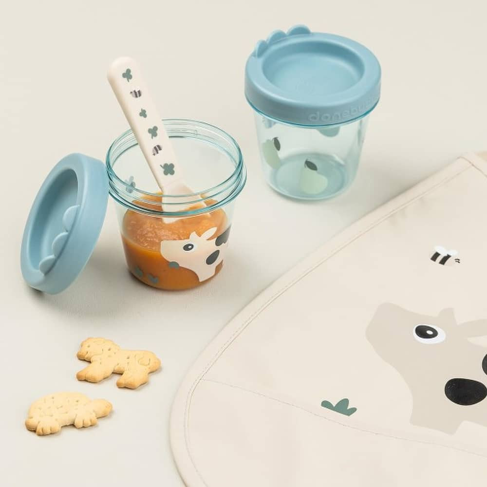 A Done by Deer Bébiétel tároló, 2 db, Tiny Farm, kék Dotti és körtemintával, tökéletes társa a baba ételeinek frissen tartásához. Szivárgásmentes kialakítása garantálja a biztonságos szállítást. BPA-mentes, élelmiszeripari minőségű anyagból készült, amely tartós és hosszú élettartamú.