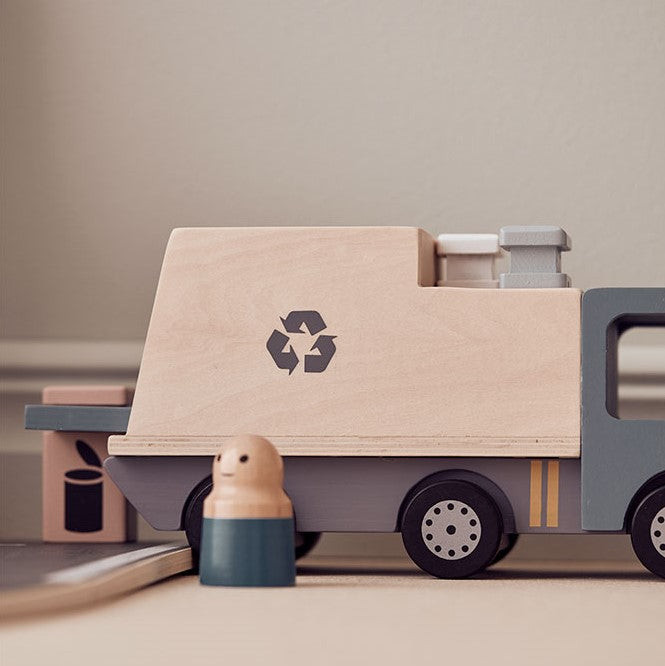 A fából készült szelektív hulladékgyűjtő kukásautó négy válogató edénnyel rendelkezik, amivel könnyen megismerkedhettek az újrahasznosítás szabályaival.