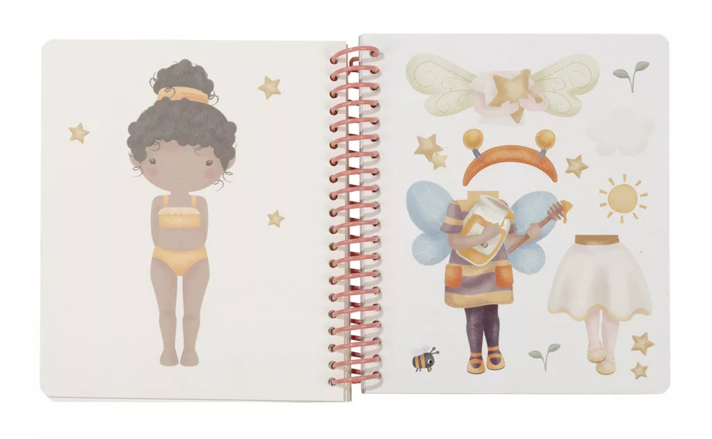 12 oldalon találhatók meg a legszebb ruhák és kiegészítők matricái. A gyönyörűen részletezett rajzok Little Dutch stílusban órákon át szórakoztatják a gyerkőcöket.