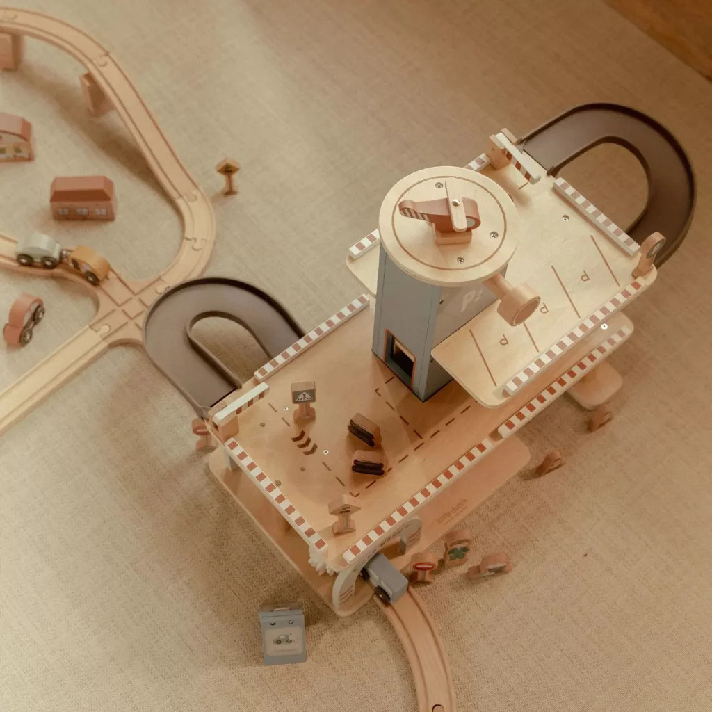 Parkolj, tankolj, és indulhat a száguldás! A Little Dutch fából készült parkolóház igazi álom minden kis autórajongónak, és tökéletes kiegészítője a Little Dutch fa sínpálya XL készletnek.