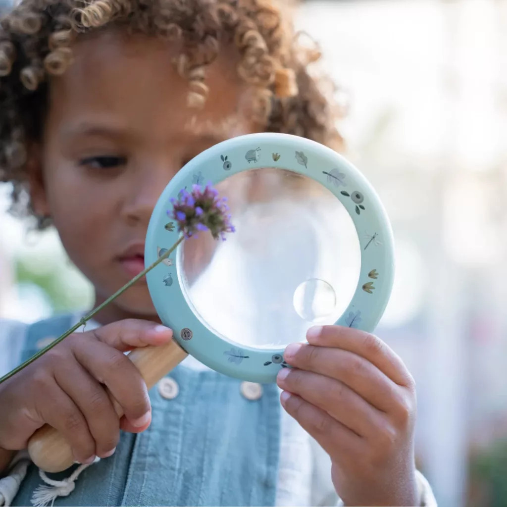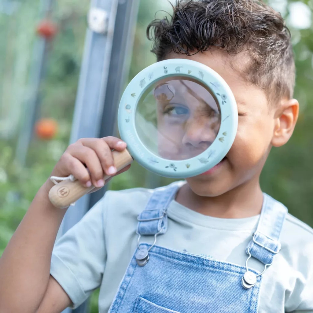 A masszív fa keret és fogantyú biztos fogást és kényelmes használatot garantál, miközben a Forest Friends téma varázslatos megjelenést kölcsönöz a kis felfedezők számára. A nagyító beépített mini lencsével is rendelkezik, amely lehetővé teszi a növények és rovarok legapróbb részleteinek vizsgálatát.