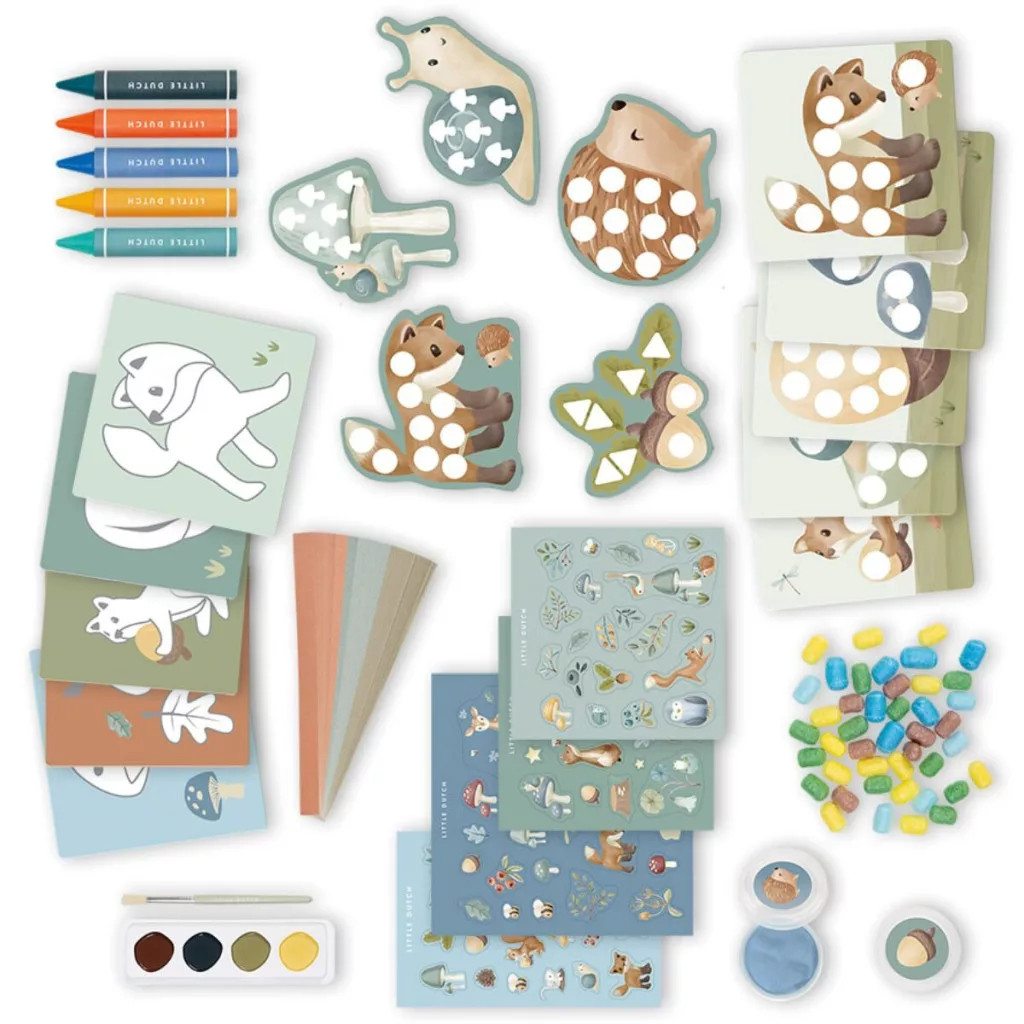 Ez az átfogó kézműves készlet tele van mindenféle eszközzel, melyek lehetővé teszik, hogy gyermeked képzelete életre keljen. Festékek, zsírkréták, matricák, gyurma és még sok más várja, hogy a kis alkotók a legkülönlegesebb és legszínesebb műveket hozzák létre, és megelevenítsék a varázslatos Forest Friends világát.