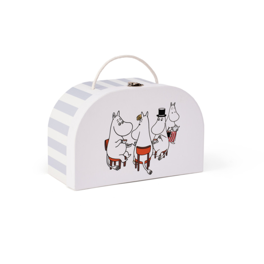 Ez a bájos Mumin kisbőrönd tökéletes társ minden kalandhoz legyen szó egy igazi utazásról, hétvégi kirándulásról vagy képzeletbeli játékról a gyerekszobában. A tartós, mégis könnyű karton bőröndben a gyerekek magukkal vihetik kedvenc játékaikat, könyveiket vagy apró kincseiket.